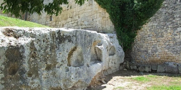 Tot aprofitant una petita plataforma de la cinglera de ponent es troba un edifici, a l'exterior del recinte, a l'extrem nord-oest de la muralla. Destaquen diferents estructures tallades a la roca: fermadors per lligar les muntures, menjadores i un curiós abeurador comunicat amb una cisterna.